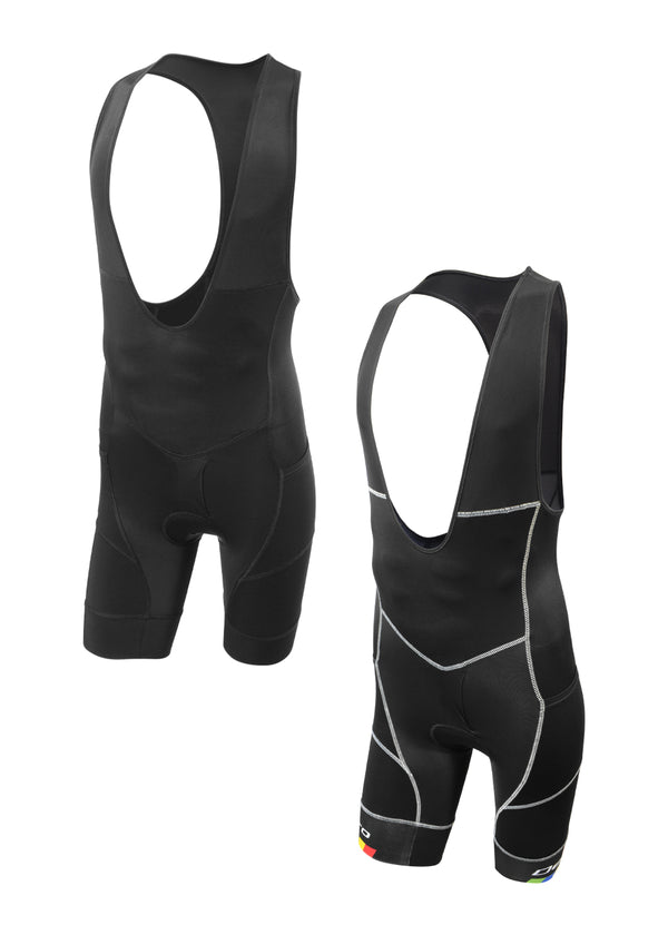 Die weltweit erste Rad- und Triathlon-Trägerhose mit Eingriff! Endlich können Sie auf die Toilette gehen, ohne an den Trägern zu ziehen oder sich auszuziehen.