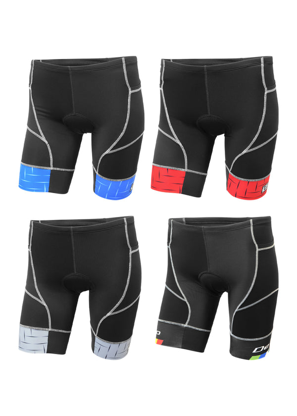 - Dos bolsillos "nadables", uno al costado de cada pierna. Estos bolsillos no crean resistencia adicional cuando no se lleva traje de neopreno y brindan soluciones de almacenamiento para la bicicleta y la carrera.