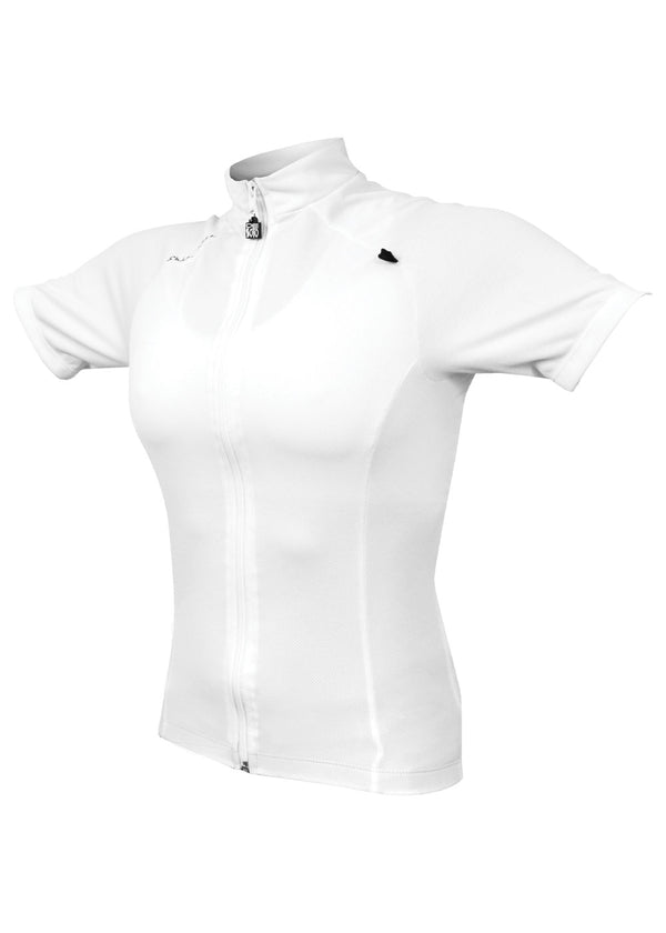 Este maillot de ciclismo de calidad tiene un cuerpo Skin Cooler™ Piqué para máxima frescura y protección solar. Tiene 3 bolsillos traseros, un lazo para anteojos de sol (otra invención de De Soto) y una pinza elástica Skin Cooler alrededor de la cintura para mantenerlo en su lugar. Diseñado por mujeres para mujeres con un diseño y ajuste delgados, con una elegante variedad de logotipos de marcas registradas.