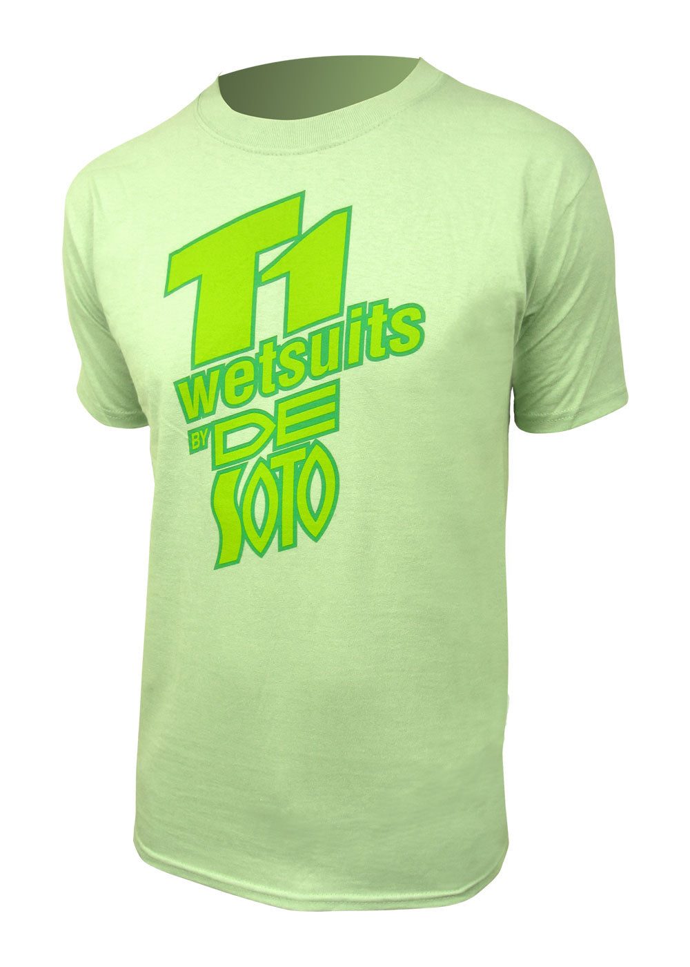 The front has our original T1 Logo, and the back has our new GreenGoma™ Limestone Rubber Technology logo. Below it states: "The rubber you can use over and over again!" It really is more durable that any other wetsuit rubber, period...that is what we meant by that...really. A bit edgy and not a shirt everyone would wear, but just like GreenGoma™ rubber, we like pushing the limits.